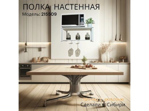 Полка c двумя бокалодержателем для микроволновки "SVCH 215509" 60х30см, белая, белый