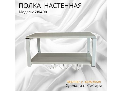Полка c тремя бокалодержателями для микроволновки "SVCH 215499" 60х30см, белая, сосна выбеленная
