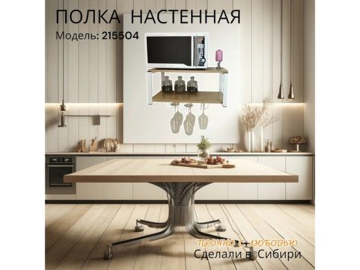Полка c тремя бокалодержателями для микроволновки "SVCH 215504" 60х30см, белая, дуб сонома