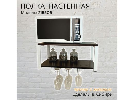 Полка c тремя бокалодержателями для микроволновки "SVCH 215505" 60х30см, белая, венге
