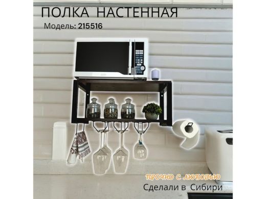 Полка c тремя бокалодержателем и полотенцед. для микроволновки "SVCH 215516" 60х30см, черная, венге