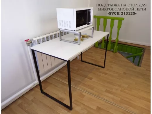 Универсальная подставка для микроволновой печи позволяет эффективно использовать место на столе.