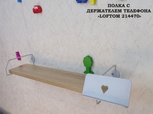 Полка с держателем телефона, серый "LOFTOM 214470" полка 54х10 см, дуб сонома