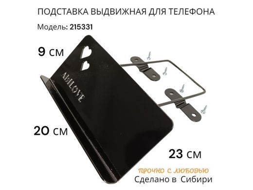 Полка для телефона стальной прочный выдвижной держатель "ABILOVE 215331" черный 9х20х23см