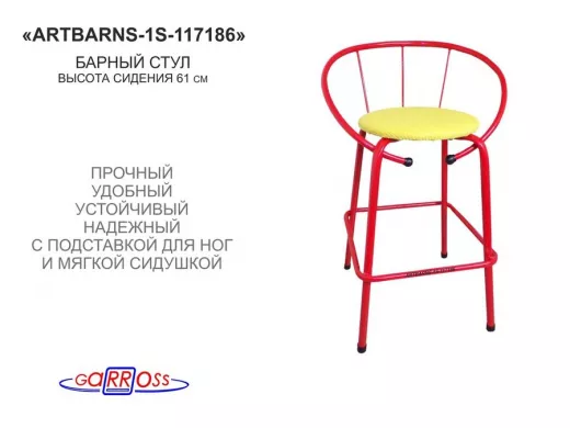Барный стул "ARTBARNS-1S" органично дополнит интерьер модного заведения или домашней кухни. Стильная модель высотой 0,61 метра устойчиво стоит на четырех опорах с удобными подножками.