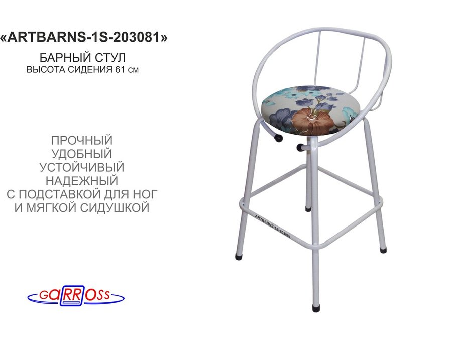 - "ARTBARNS-1S" позволит уютно расположиться, облокотиться на спинку и провести немало приятных минут за коктейлями и беседой. Сиденье удобной формы обито тканью.