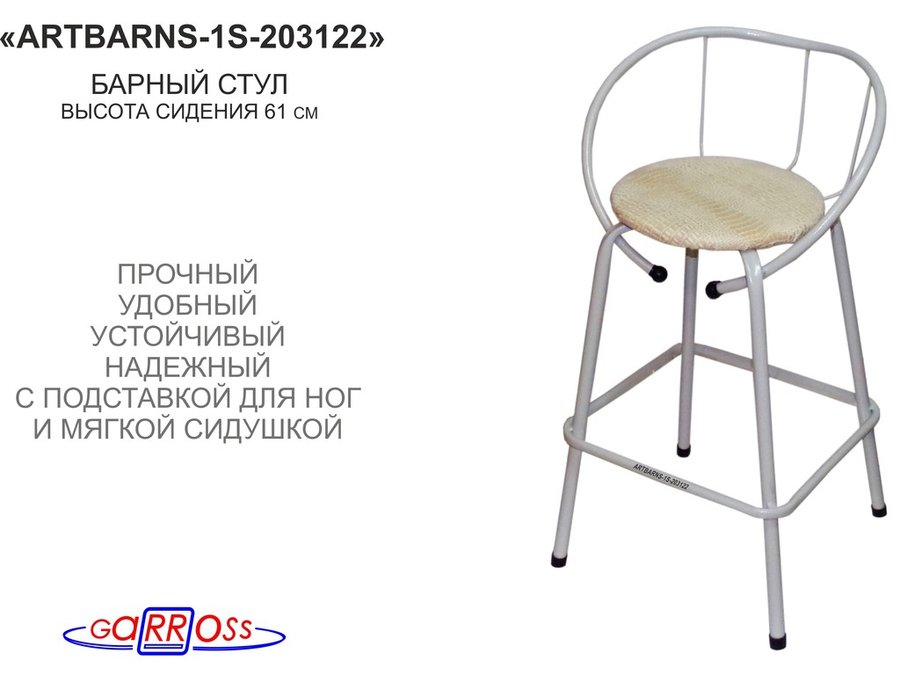 Барный стул "ARTBARNS-1S" органично дополнит интерьер модного заведения или домашней кухни. Стильная модель высотой 0,61 метра устойчиво стоит на четырех опорах с удобными подножками.