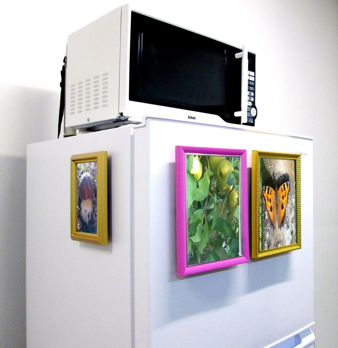 Фотографиями на холодильнике можно освежить и украсить интерьер вашей кухни.