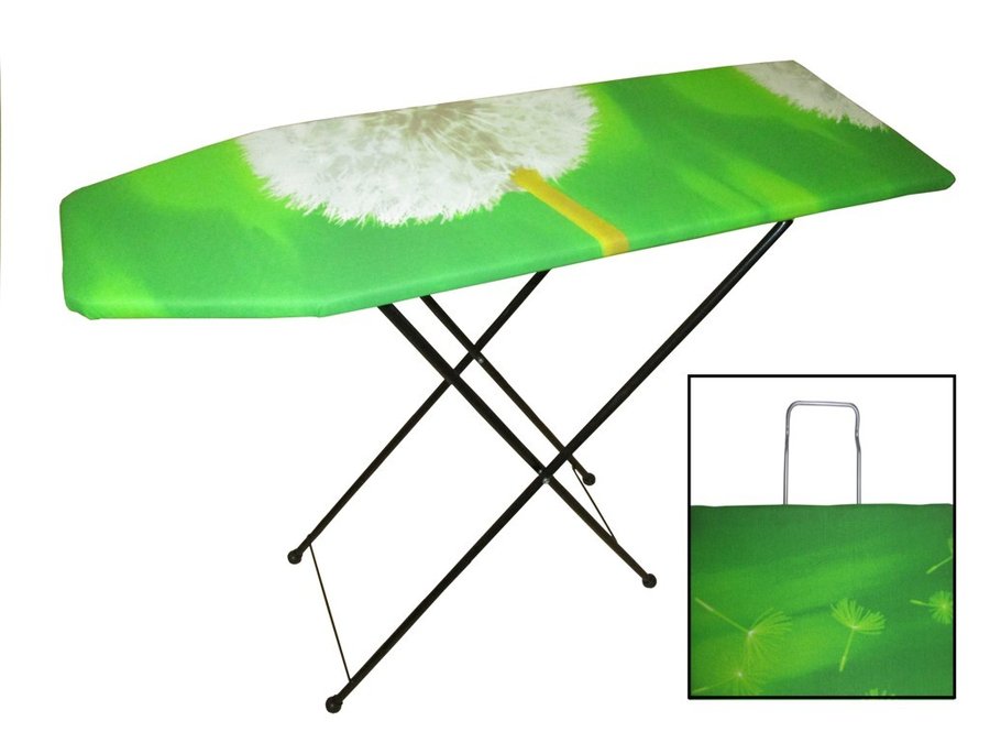 Доска гладильная "РАДУГА-4" РАСЦВЕТКА-W1642 (зел.,ноги ЧЁРНЫЕ) 4ноги,3 уровня,узкий ПОДУТЮЖНИК(в шт)