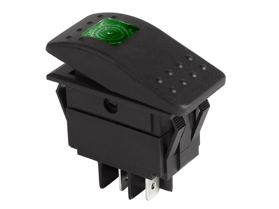 В корзину Купить в 1 клик Выключатель клавишный 12V 35А (4с) ON-OFF зеленый с подсветкой REXANT