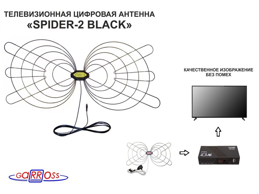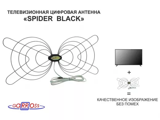 В корзину Купить в 1 клик "SPIDER-2 BLACK" антенна цифровая телевизионная DVB-T2 , МВ/ДМВ, кабель 5метров