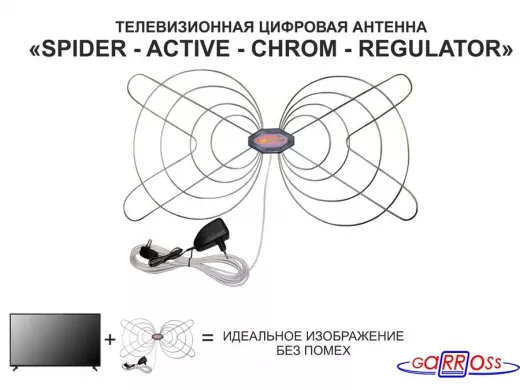 В корзину Купить в 1 клик "SPIDER - ACTIVE - CHROM - REGULATOR" антенна DVB-T2,МВ/ДМВ усил.и бл.пит.,серебристая