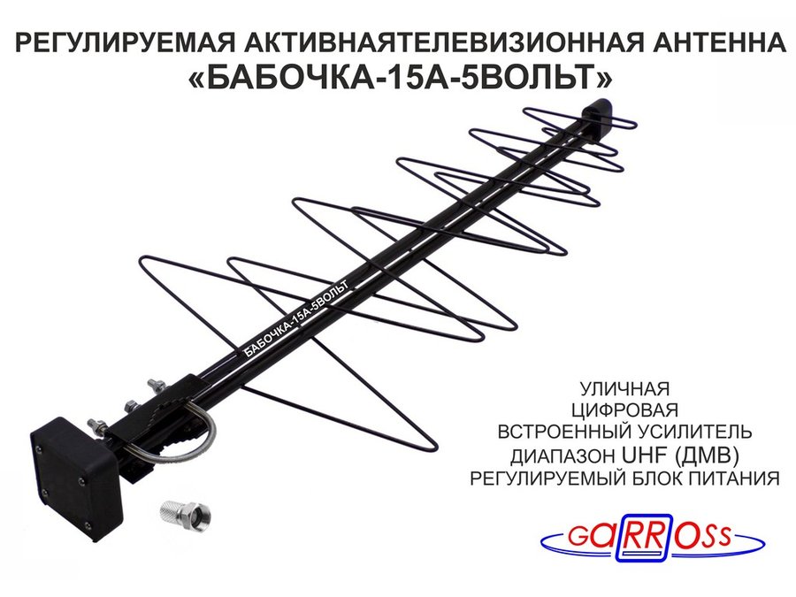 В корзину Купить в 1 клик "БАБОЧКА-15А-12ВОЛЬТ" РЕГУЛИРУЕМАЯ АКТИВНАЯ ЧЁРНАЯ уличная антенна DVB-T2, с регулируемым усилителем