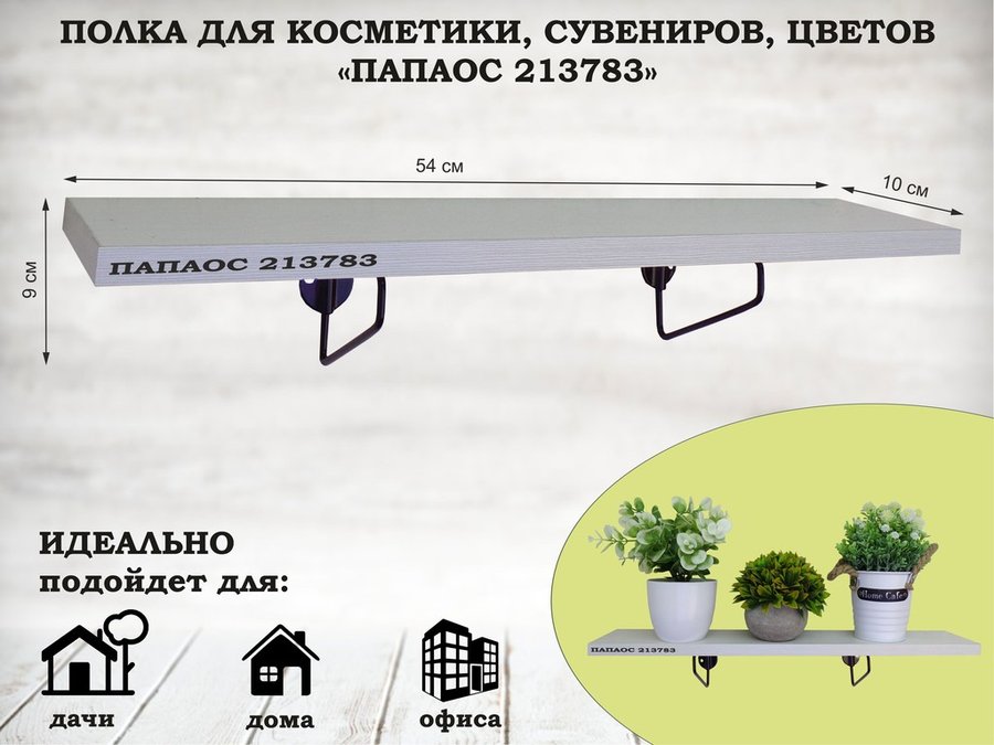 В корзину Купить в 1 клик Полка для косметики, сувениров, цветов, 54х10 см, высота 9 см, черный "ПАПАОС 213783" сосна