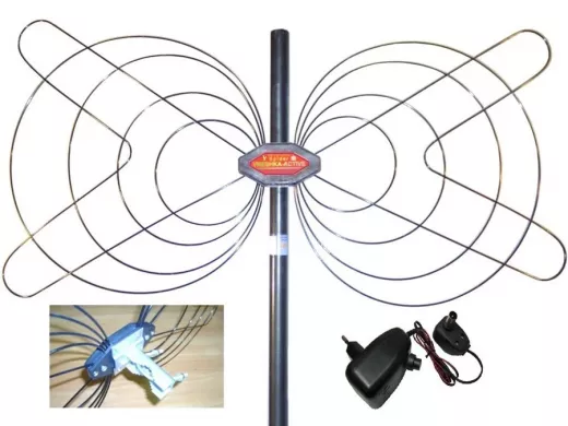 В корзину Купить в 1 клик "БАБОЧКА-15А-12ВОЛЬТ" РЕГУЛИРУЕМАЯ АКТИВНАЯ СЕРЕБРИСТАЯ уличная антенна DVB-T2, с регулируемым усили