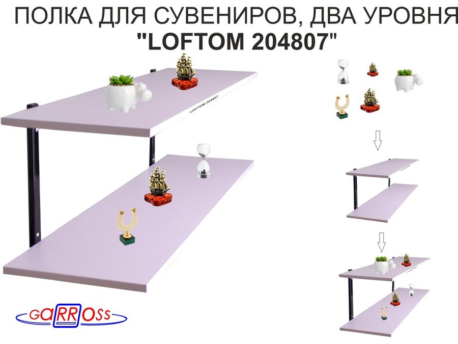 Полка для сувениров, высота 25см, два уровня "LOFTOM 204807" размер 120х30см, чёрный/лаванда