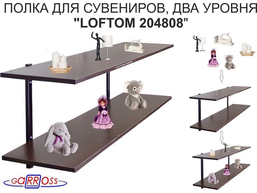 Полка для сувениров, высота 25см, два уровня "LOFTOM 204808" размер 120х30см, чёрный/венге