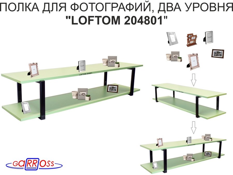 Полка для фотографий и игрушек, высота 25см "LOFTOM 204801" размер 120х30см, чёрный/салатовый