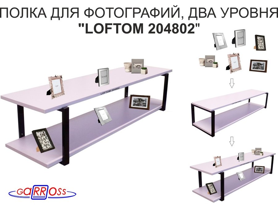 Полка для фотографий и игрушек, высота 25см "LOFTOM 204802" размер 120х30см, чёрный/лаванда
