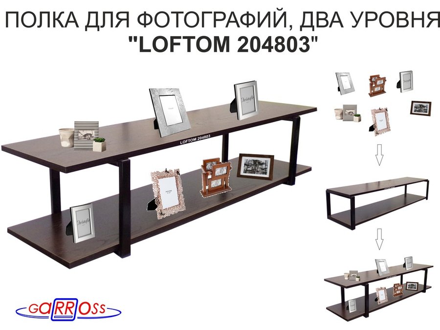 Полка для фотографий и игрушек, высота 25см "LOFTOM 204803" размер 120х30см, чёрный/венге