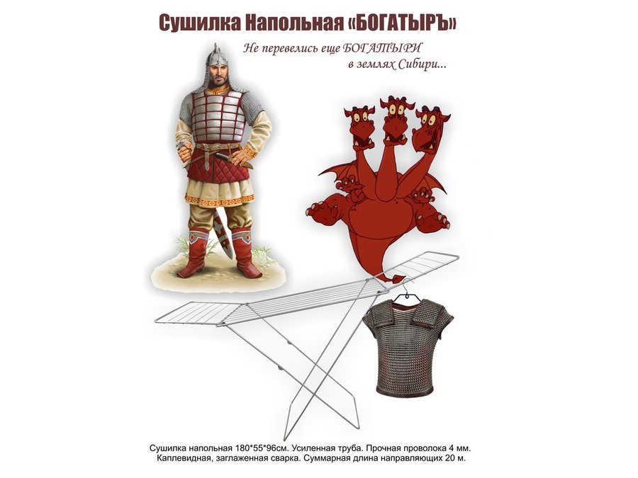 - "БОГАТЫРЬ STYEL - 6" сушилка напольная СЕРАЯ 20 метров, предназначена для сушки белья