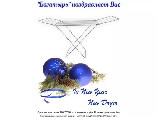 • "БОГАТЫРЬ STYEL - 2" сушилка напольная СЕРЕБРИСТАЯ 20 метров, предназначена для сушки белья
