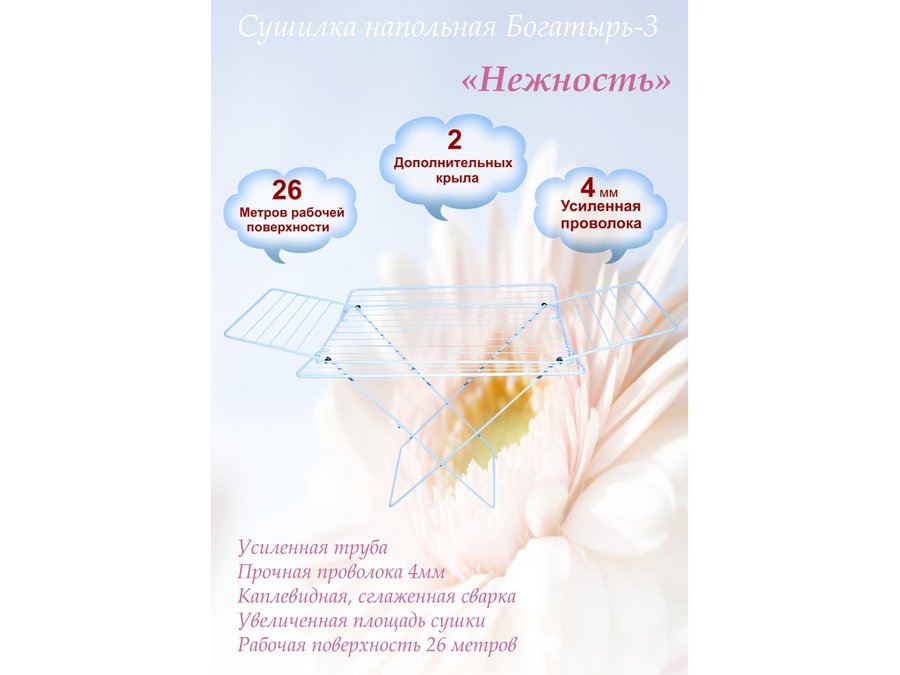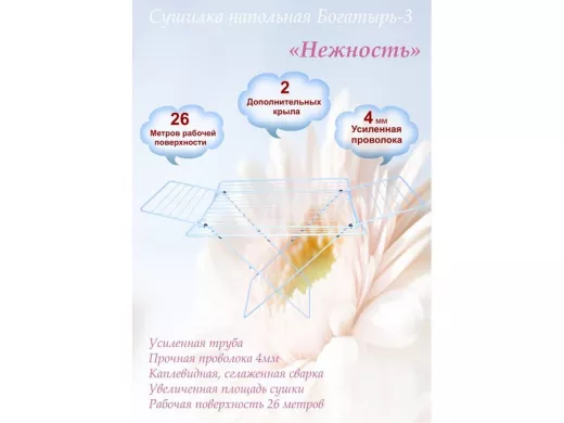 • "БОГАТЫРЬ-3" НЕЖНОСТЬ сушилка напольная БЕЛАЯ  26 метров, предназначена для сушки белья