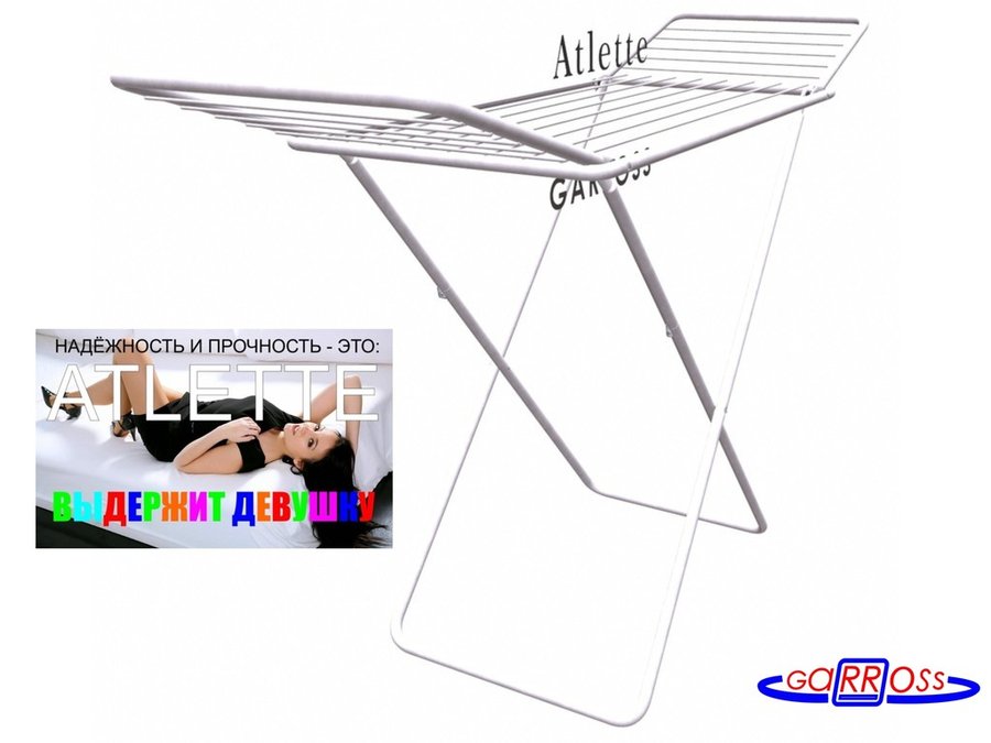 В корзину Купить в 1 клик "ATLETTE-81296" сушилка напольная белая, ВЫДЕРЖИТ ДЕВУШКУ труба 22мм, проволока 5мм, до 50кг