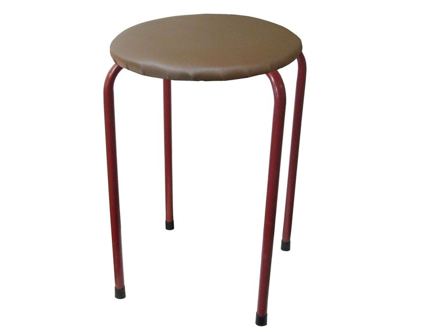 В корзину Купить в 1 клик Табурет универсальный "TABURETTO-15824" круглое сиденье, красные ножки, корчневый, кожзам