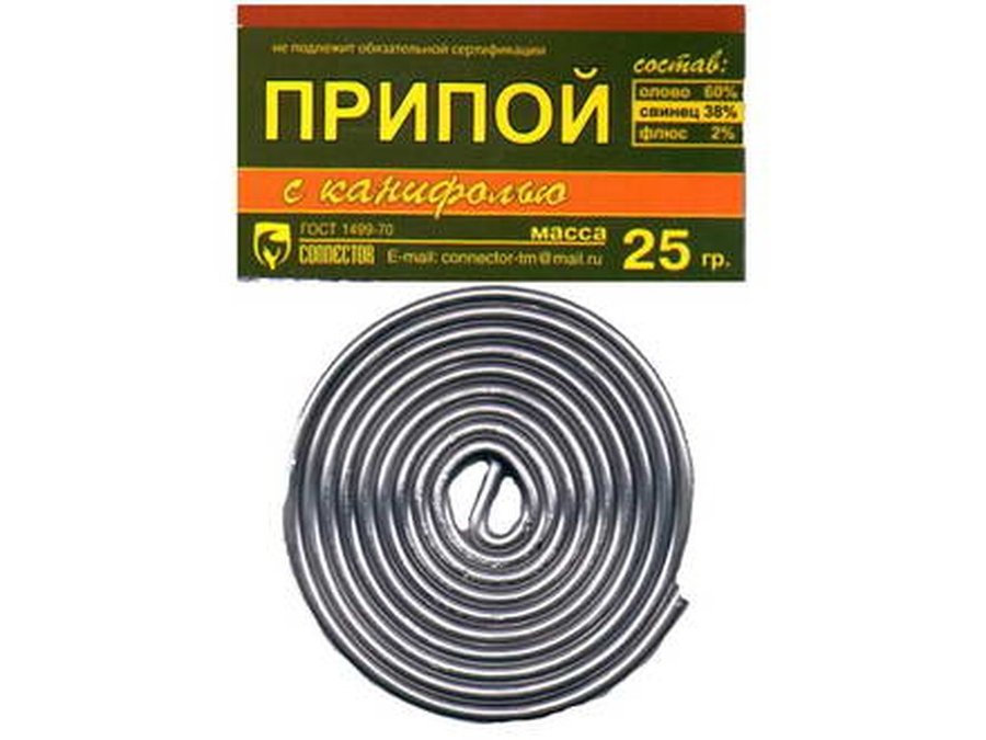 В корзину Купить в 1 клик Припой (спираль) ПОС 61 с канифолью 25г