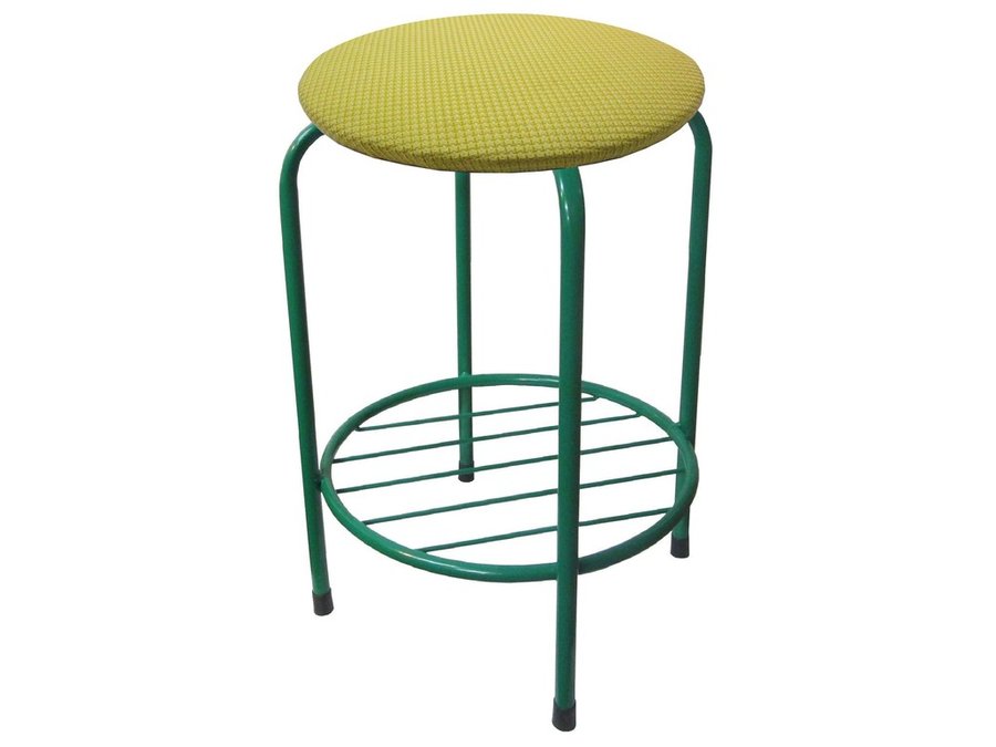 В корзину Купить в 1 клик Табурет с подставкой для ног и полкой "TABURETTO-15535" круглое сиденье, зелёные ножки, жёлтый,ткань