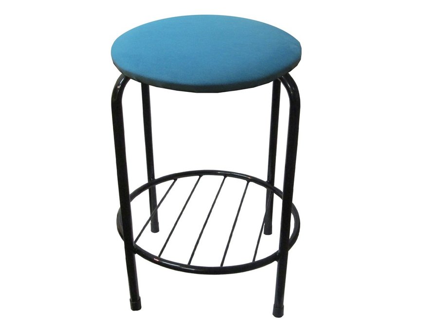 В корзину Купить в 1 клик Табурет с подставкой для ног и полкой "TABURETTO-20461" круглое сиденье, чёрные ножки, синий, ткань