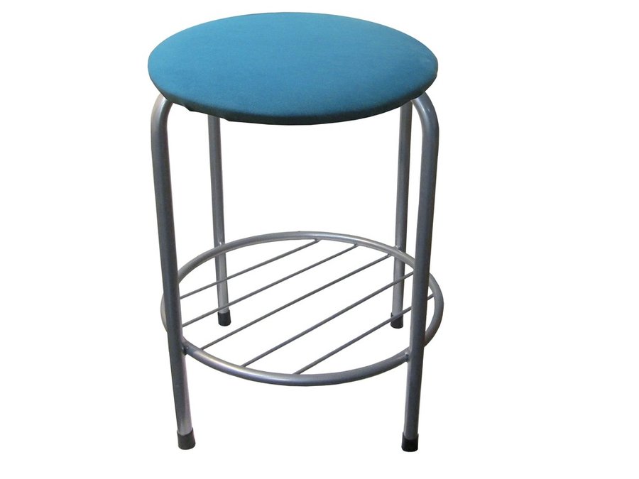 В корзину Купить в 1 клик Табурет с подставкой для ног и полкой "TABURETTO-20490" круглое сиденье, серебристый, синий, ткань
