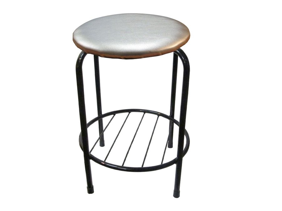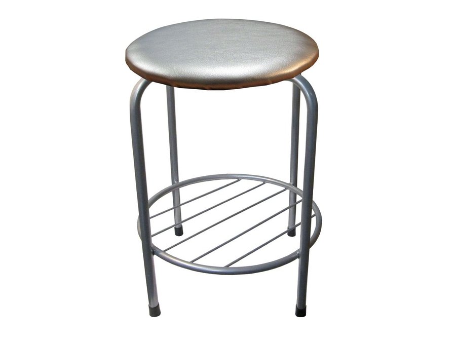 В корзину Купить в 1 клик Табурет с подставкой для ног и полкой "TABURETTO-20480" круглое сиденье, серебрис, серебрис, экокожа