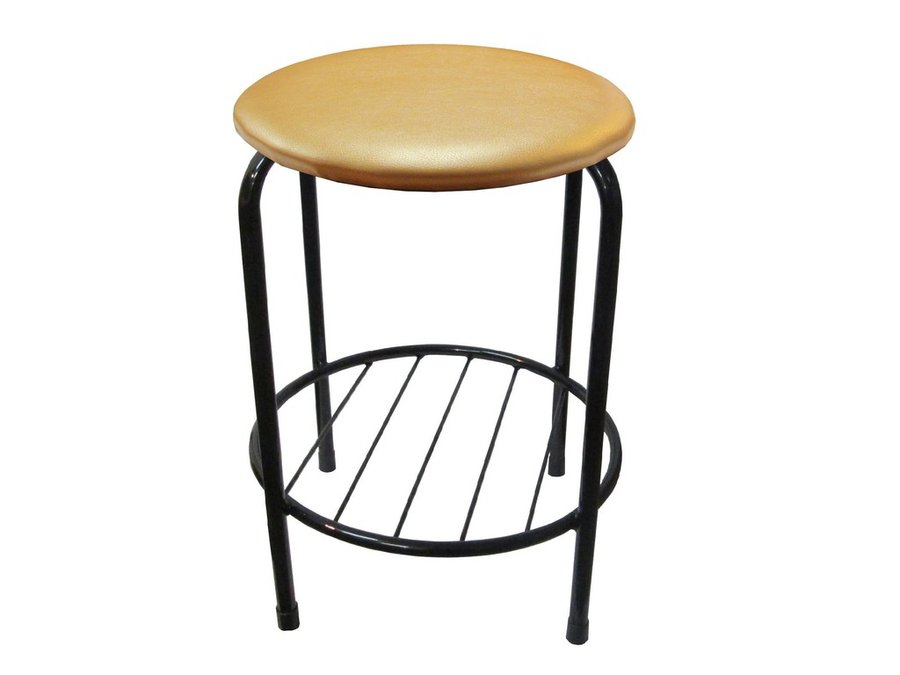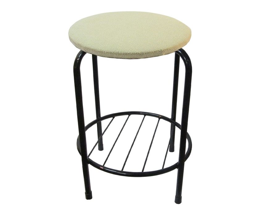 В корзину Купить в 1 клик Табурет с подставкой для ног и полкой "TABURETTO-20488" круглое сиденье, чёрные ножки, бежев., ткань