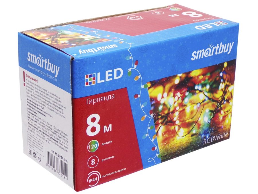 В корзину Купить в 1 клик LED Гирлянда Smartbuy с контроллером, RGB, 8м, 120 диодов, IP44, прозрачный провод (SB-RGBIP44-8m)