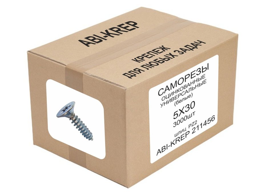 В корзину Купить в 1 клик Саморезы универсальные оцинкованные 5 х 30 белые (3000шт) "ABI-KREP 211456" 7,14кг, шлиц PZ2 2,38г