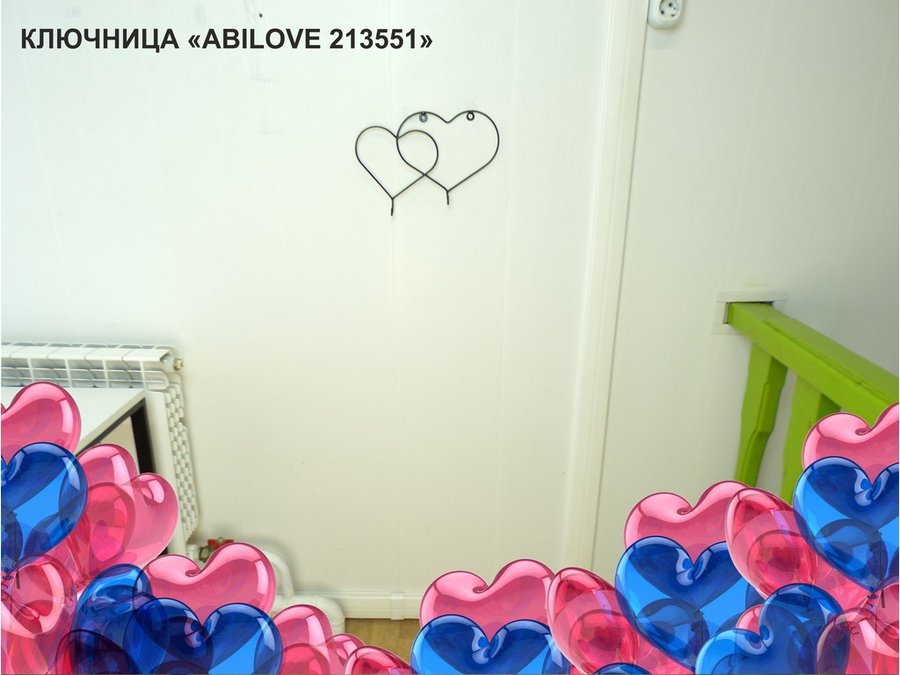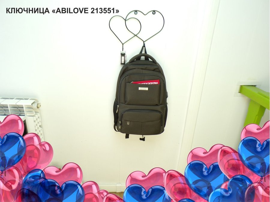 Ключница, держатель полотенец, вешалка, два сердца с двумя крючками, чёрный "ABILOVE 213551"
