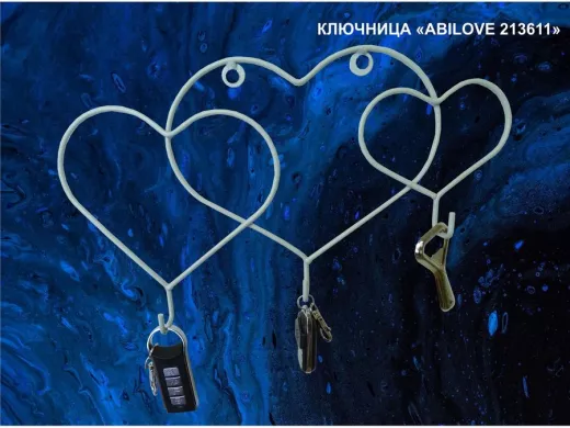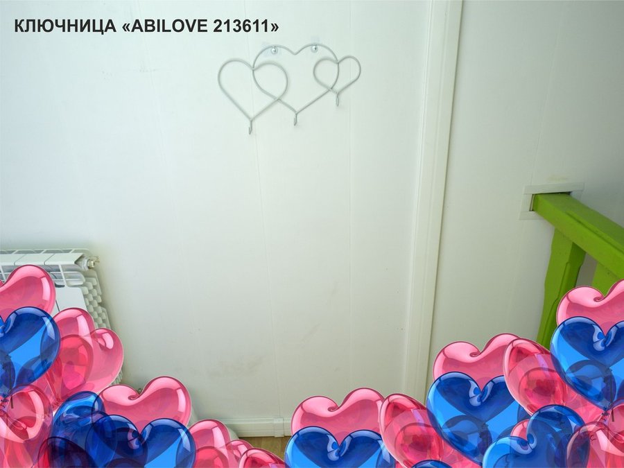 Ключница, держатель полотенец, вешалка в прихожую, три сердца с крючками, серый "ABILOVE 213611"