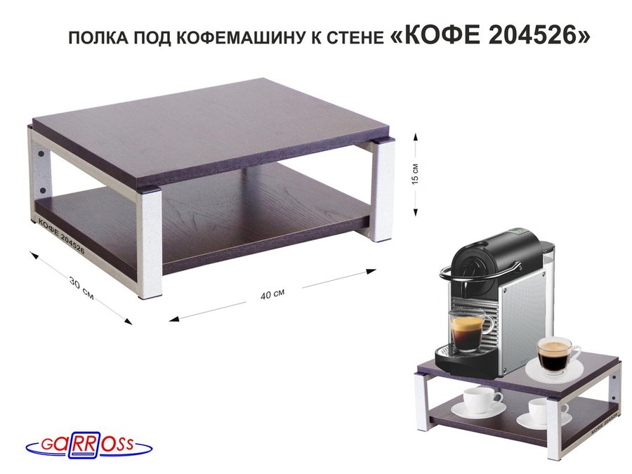 В корзину Купить в 1 клик Полка под кофемашину к стене, высота 17см, серый каркас "КОФЕиЯ 204526" полки 30х40см венге