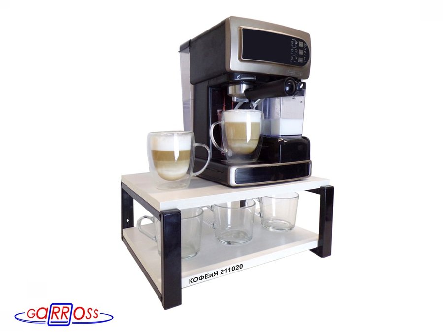 - Полка надежно крепится к стене при помощи анкеров или шурупов с дюбелями, на ней можно разместить Вашу кофемашину, микроволновую печь и другую кухонную технику, посуду, специи
