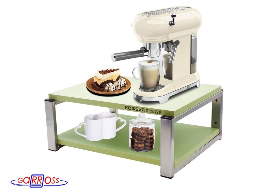 Полка под кофемашину к стене, высота 17см, серебристый "КОФЕиЯ 213175" полки 30х40см, салатовый