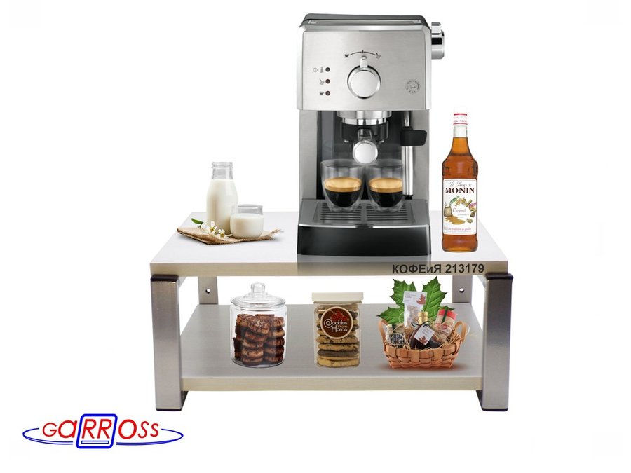 Полка под кофемашину к стене, высота 17см, серебристый "КОФЕиЯ 213179" полки 30х40см, сосна выбел.