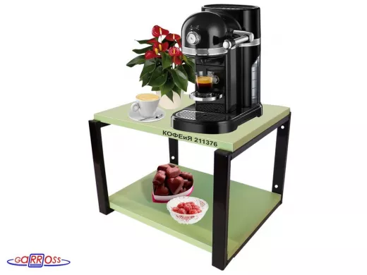 Полка под кофемашину к стене, высота 27см, черный каркас "КОФЕиЯ 211376" полки 30х40см,салатовый