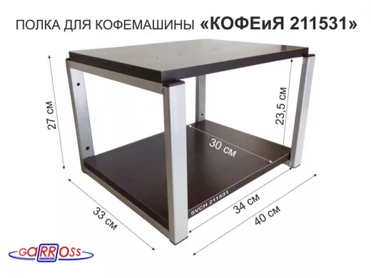 В корзину Купить в 1 клик Полка под кофемашину к стене, высота 27см, серый каркас "КОФЕиЯ 211531" полки 30х40см, венге
