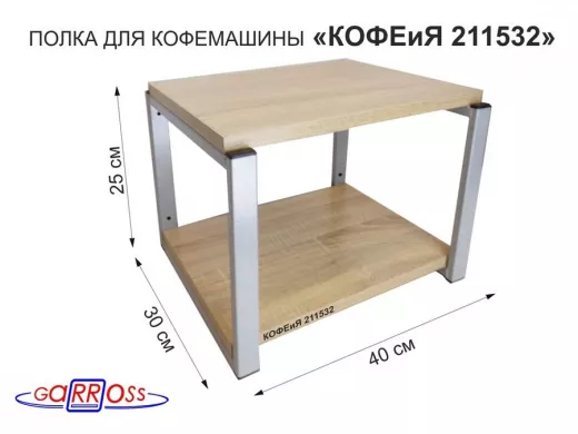 Полка под кофемашину к стене, высота 27см, серый каркас "КОФЕиЯ 211532" полки 30х40см, дуб
