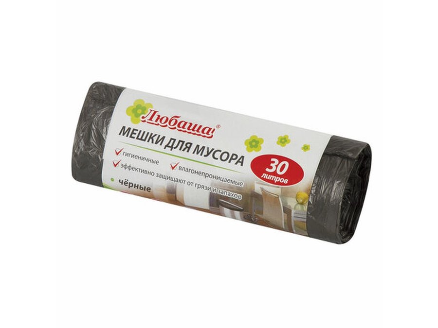 В корзину Купить в 1 клик Мешки для мусора 30литров "BR-78282", черные в рулоне 20 штук, ПНД, 5мкм, 47х55см (+5%), эконом