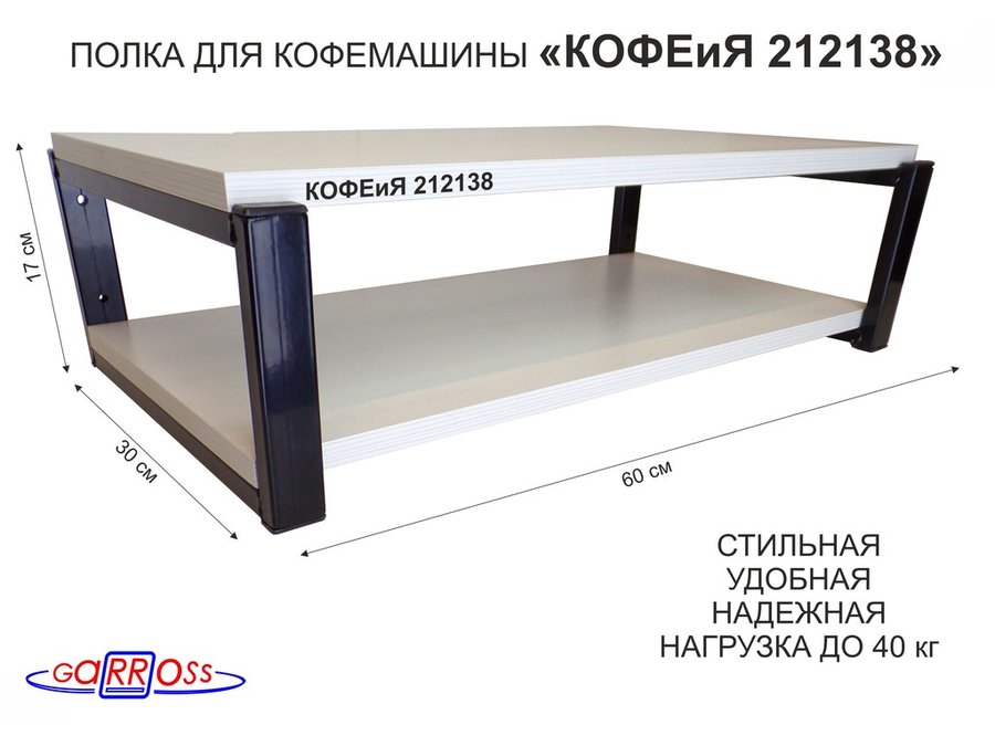 • Полка надежно крепится к стене при помощи анкеров или шурупов с дюбелями, на ней можно разместить Вашу кофемашину, кухонную технику, посуду, специи