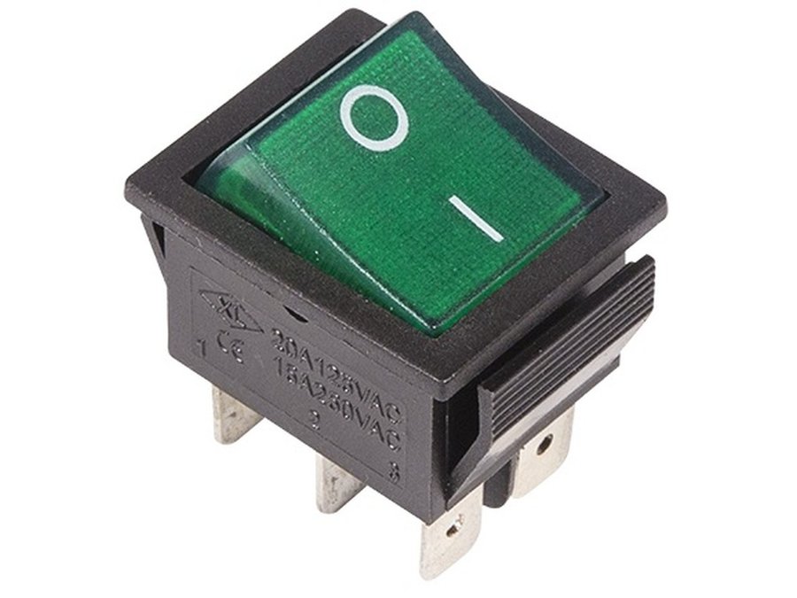В корзину Купить в 1 клик Выключатель клавишный 250V 15А (6с) ON-ON зеленый с подсветкой REXANT