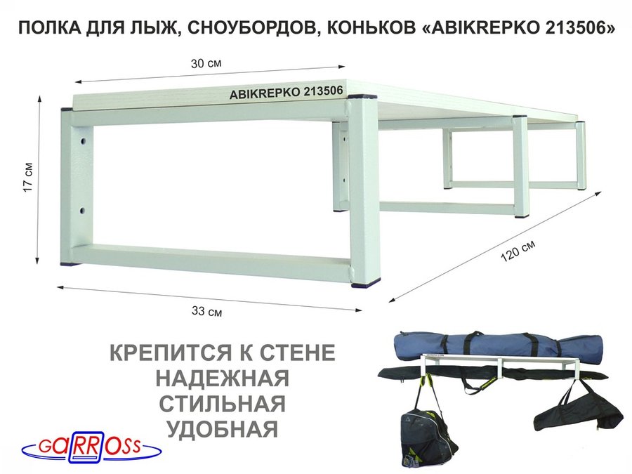 Полки для лыж , сноубордов , коньков "ABIKREPKO" высота 17см, 120х30см, 1 уровень